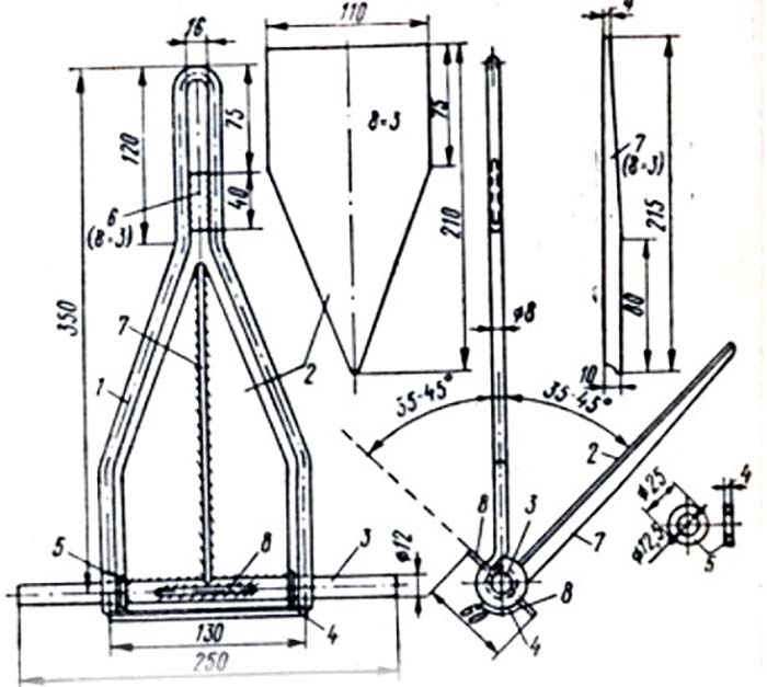 soldantmetall. A més, aquests mètodes es poden combinar entre si. En la majoria dels casos, els pescadors ho fan: llancen per separat totes les grans parts de l’ancoratge: fus, potes i brou. Després, les potes es solden amb un eix i, posteriorment, es solda la tija. Per obtenir més força, sovint les potes i el fus es fixen amb una pinça, fent un forat a cada part i soldant-hi una vareta. Dibuixos d’ancoratges de fabricació pròpia per a embarcacions de PVC: