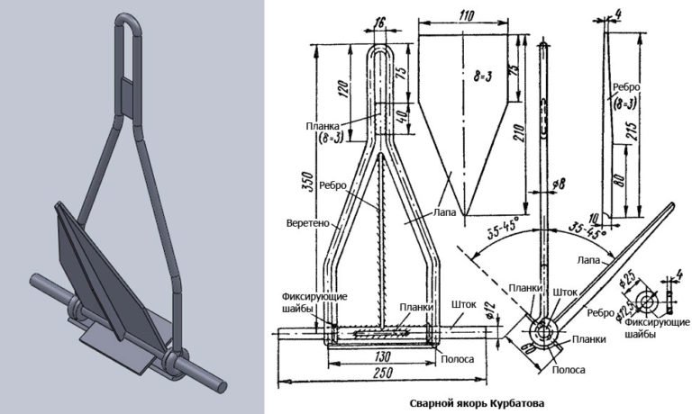 ved svejsningmetal. Disse metoder kan også kombineres med hinanden. I de fleste tilfælde gør lystfiskere netop det: De støber alle de store dele af ankeret separat: spindel, ben og lager. Derefter svejses poterne med en spindel, og senere svejses stammen. For styrke er begge poter og spindlen ofte fastgjort med en klemme, hvilket gør et hul i hver del og svejser en stang ind i den. Tegninger af hjemmelavede ankre til PVC-både: