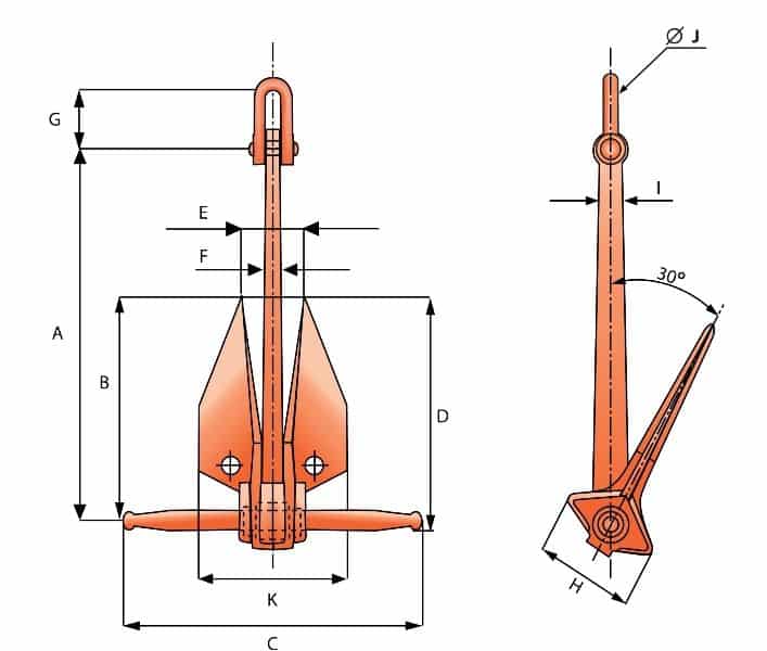- The Hall anchor is also a very popular and effective type of construction used both for PVC boats and in the navy. The function of the rod at the anchor is performed by swivel legs, under the bottom of which there is a skirt. This ensures good grip of the anchor with the bottom. By itself, the anchor is heavy and does not deeply penetrate the ground. However, all this does not prevent him from showing himself as one of the best heavy anchors that exist. This type is suitable for sandy and pebble soils. It is for PVC boats that such anchors are rarely purchased, but if, nevertheless, the owner of the floating facility made a choice in favor of the Hall design, then it is recommended to buy a model weighing at least 3.5 kilograms.
