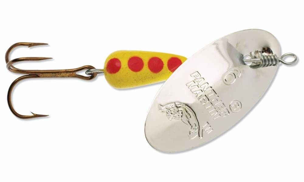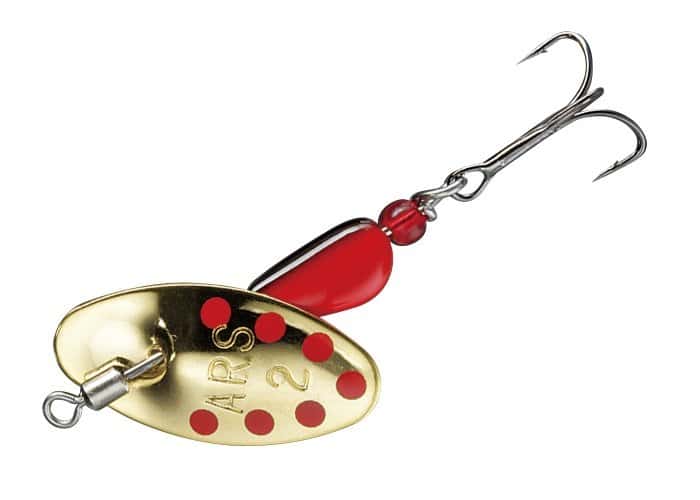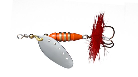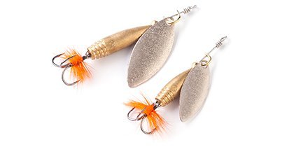 tooth, collarless spinners of the “in-line” type of large numbers from 2 and higher are also used. They are especially good on the current, as they start up at the slightest speed of retrieval and do not get out of the game when in contact with underwater vegetation.