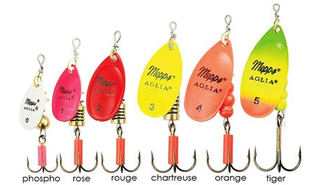 Mepps leurres . De plus, lors de la pêche au brochet, des platines – tandems sont également utilisées.