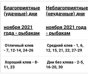 הימים המצערים ביותר, בהם הדג כמעט בלתי פעיל, וכמעט אין נשיכה: 1, 2, 12, 13, 14, 15, 16, 26, 27, 28 ו -29 ימי ירח. לוח השנה הירחי לשנת 2021 לדייג בקרליה בסתיו לפי חודשים הוא כדלקמן: