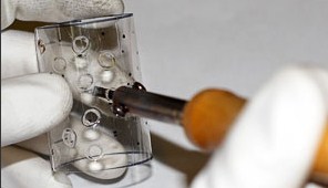 - ブラケットはノミを使ってスロットにリベット留めされます。