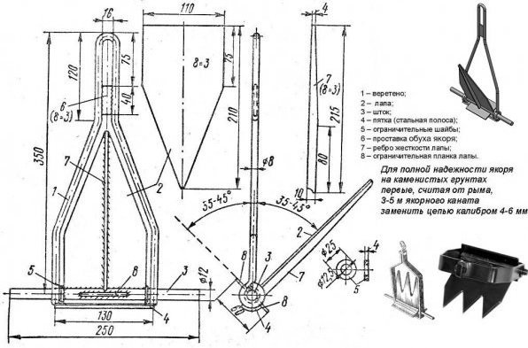 Чертежи самодельных якорей для ПВХ лодок: