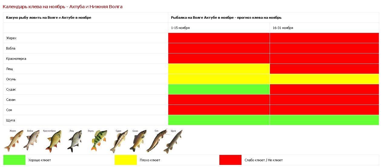 Полезно! Еще один календарь клева рыбы на Волге осенью — рыбалка по какой рыбе будет эффективна в сентябре, октябре и ноябре: