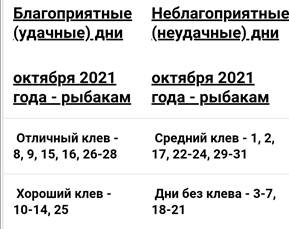 Những ngày kém may mắn nhất, khi cá ít hoạt động và hầu như không cắn câu: các ngày 1, 2, 12, 13, 14, 15, 16, 26, 27, 28 và 29 âm lịch. Lịch âm cho năm 2021 đối với câu cá ở Karelia vào mùa thu theo tháng như sau: